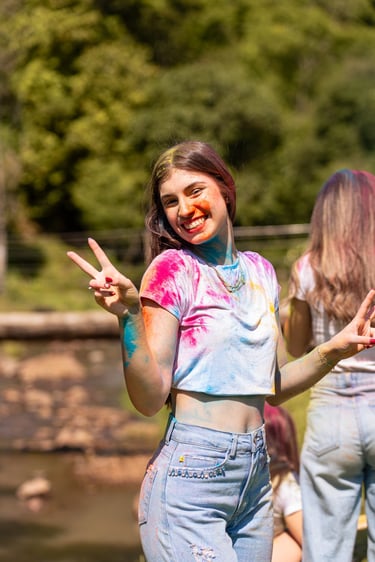 Depois das clássicas, vem a famosa Guerra de Tintas (que depois vai direto pro Instagram). Zero pose, zero protocolo. Só bagunça e a tinta pro alto. É a hora de extravasar e curtir o dia.