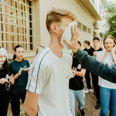 O Terceirão não acontece só na cadeira da sala de aula. A gente acompanhou vocês ocupando cada canto da escola: na quadra durante os Jogos Interséries, na criatividade dos Trotes e na calmaria no piquenique do Dia do Estudante. Também estivemos no Torta na Cara, registrando a sujeira, as respostas erradas e as risadas. Onde a turma estava reunida fazendo barulho, a Celebra estava junto